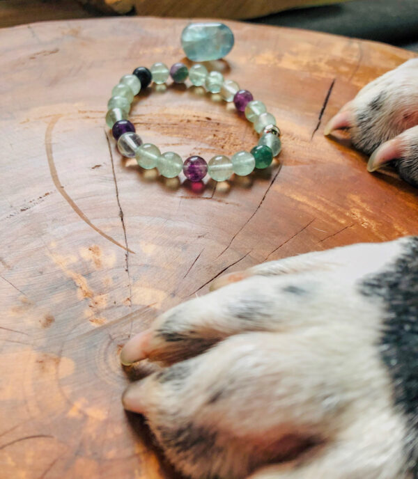Naj vas podprejo zdravilne energije fluorita. Čarobna kristalna zapestnica Fluorit obsega 16 cm.