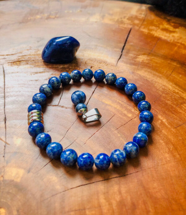 Kristalni komplet za oba. Naj vas in vašega ljubljenčka podprejo njegove energije! Čarobni komplet Sodalit iz zapestnice obsega 16 cm in obeska za mucke in manjše kužke. Ljubljenčku ga namestimo na ovratnico ali pa položimo na ležišče v blazinici, pod nadzorom oz zagotovimo varnost, da ne poje kristala ali da ne pride do zadušitve.