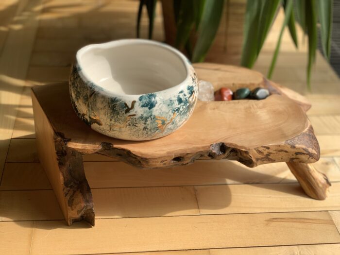 Njihova posodica je ročno izdelana posodica iz zdravilne bele gline z energetsko spiralo na dnu ter rožo življenja. Posodica je ročno poslikana in narejena prav po njihovi meri.