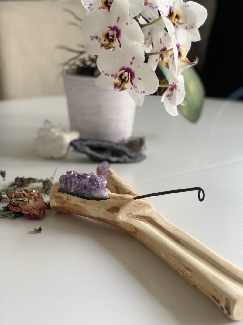Preprosta eleganca. Preprosto chic. Čarobni, elegantni, kristalni podstavek za kadilo in meditacijo iz dišečega bora in ametista. Za vsak prostor. Za dom, pisarno, dnevno sobo ali samo vaš kotiček, kjer si lahko privoščite trenutek samo zase. Svoj prostor in sebe lahko očistite energij drugih in dvignete in okrepite svojo vibracijo.